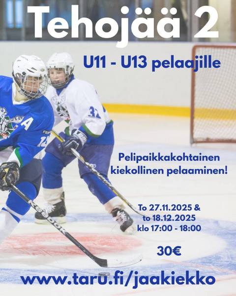 Seuraava tehojääjakso marras- joulukuussa on jaettu ikäluokittain kahteen osioon! Vanhemmat ikäluokat(U11-U13) jalostaa kiekollista luistelua pelipaikkakohtaisella harjoittelulla ja nuoremmat keskittyvät tehokkaaseen luistelutaidon harjoitteluun!
